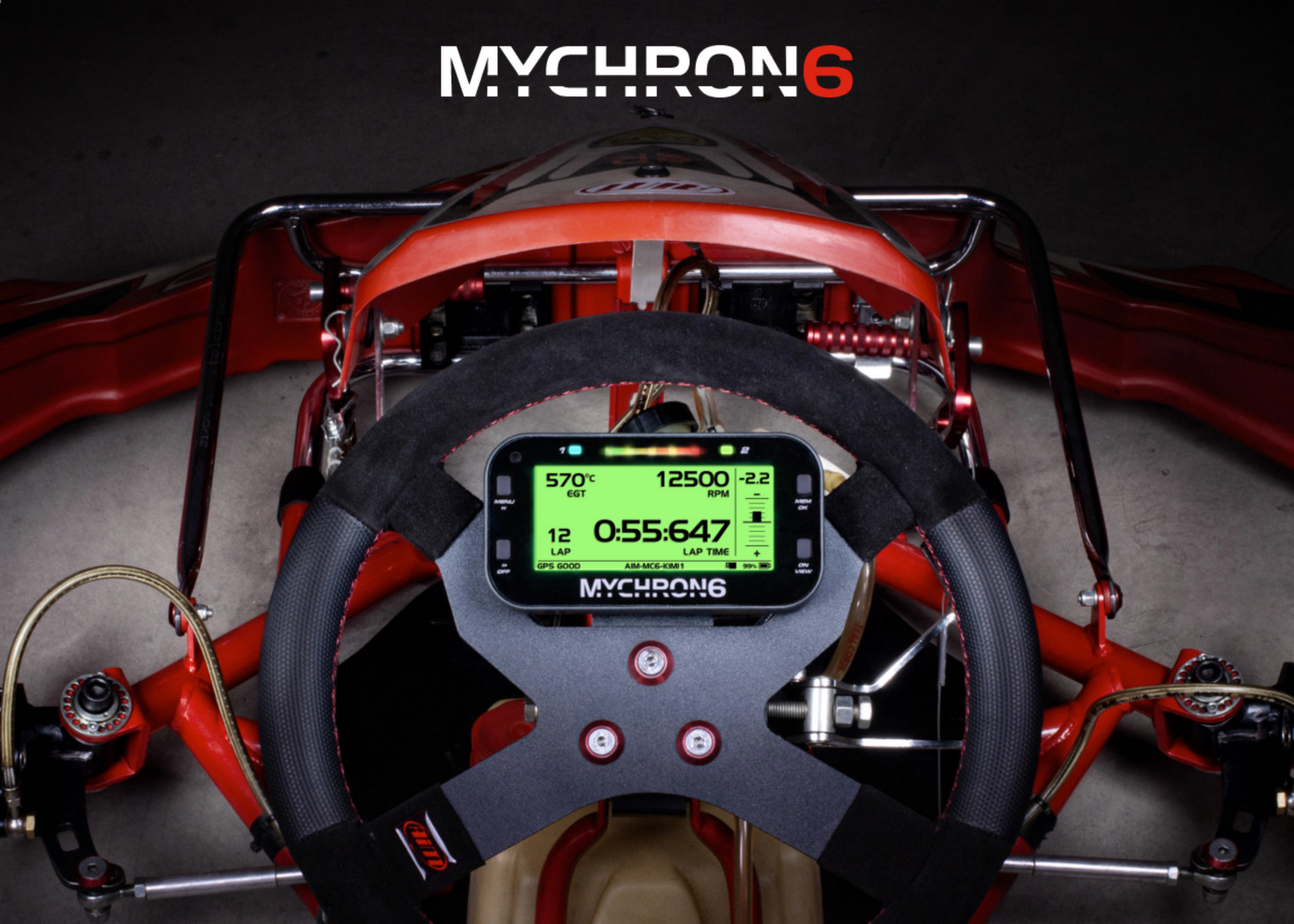 MyChron 6 è l'ultima generazione di data logger AiM, specificamente progettato per il karting. Questa versione ha un singolo ingresso per la temperatura ed è fornita senza sensori, ideale per i piloti che desiderano utilizzare i propri sensori o preferiscono una configurazione personalizzata.